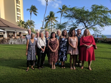 On February 15, 2020, JASNA Hawai`i members, joined by a visitor from JASNA Louisville, enjoyed an elegant tea service at Orchids at the Halekulani Hotel in Waikiki. The weather was beautiful with 80 degree temperatures, light breezes, and sunny skies. Attendees got to sample rare Maui-grown Halealaka tea in addition to the regular tea service items. As is our tradition, we played a round of Jane Austen Volleyball, with quiz questions based on Emma, and the “Right” team won over the “Left” team by the narrow margin of three to two.