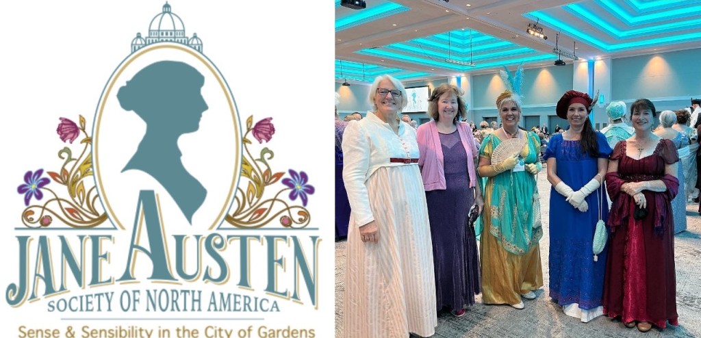 Discussion of crowded candlelit ballrooms in Northanger Abbey with JAS New Zealand reminded me of these photos from the 2022 JASNA tour to England. The chandeliers in the Assembly Rooms were converted to electirc lights and stored away for safety during WWII bombings. That’s King George III and family in the portrait. Note the high windows so the riffraff couldn’t look in.