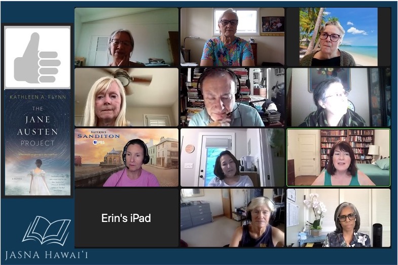 Our next Reading Group gathering is online Saturday, September 24 at 1 p.m., when we will discuss Courting Jane. Pay vicarious visits to Regency England and a fictional Annual General Meeting in Honolulu with this Jane Austen time travel romance.